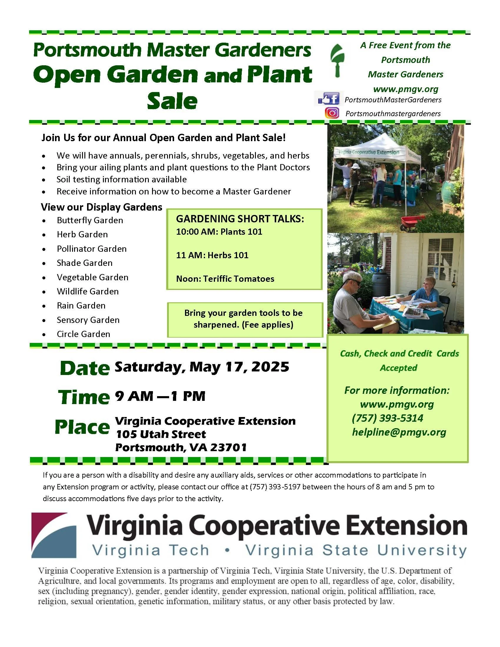 The Portsmouth Master Gardeners Association (PMGA) is a non-profit 501(c)(3) organization dedicated to promoting sustainable gardening and environmental stewardship in Portsmouth, Virginia, and surrounding communities.